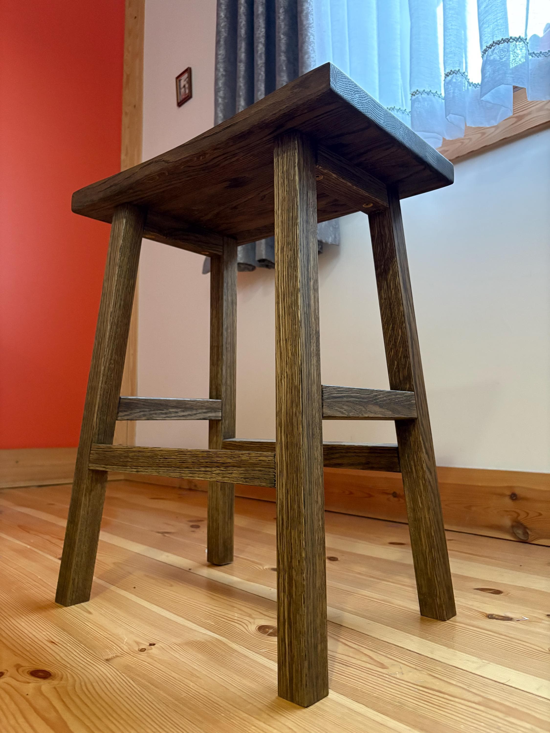 We present our oak kitchen stool. This solid and stylish piece of furniture is the perfect addition to any kitchen, especially when combined with a kitchen island, bar or countertop. Made entirely of oak, it is characterized by a simple, classic design with a slightly contoured seat. It is characterized by exceptional durability. The black oil finish makes the oak grain even more visible.